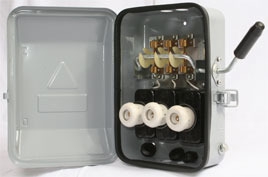 В ящик устанавливается панель с закрепленными на ней рубильником и предохранителями.