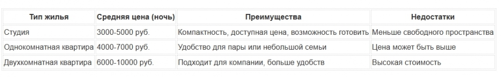 Доступные варианты жилья могут варьироваться от простых студий до роскошных апартаментов. Обязательно ознакомьтесь с отзывами предыдущих жильцов, так как они могут дать вам представление о реальном состоянии и уровне предлагаемых услуг. Также обратите внимание на фотографии, представленные арендатором; они помогут вам оценить атмосферу и стиль помещения.