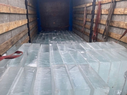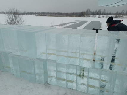 Лед идеальной геометрии, добычу производим станком, грани и углы выдержаны, что важно для работы скульпторов