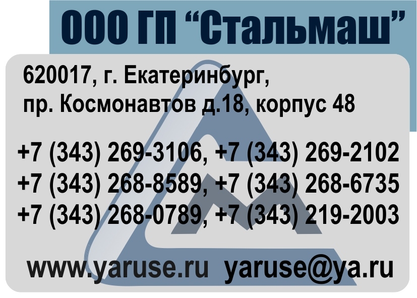 Оперативная и полная информация о наличии, ценах, условиях и сроках отгрузки по телефонам ГП Стальмаш: (343) 268-6713, 268-6735, 268-7815, 268-8589, 269-2102
