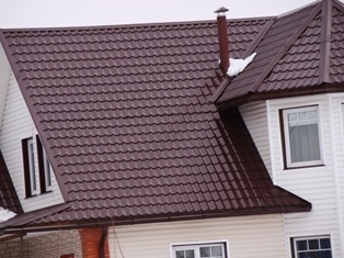 металлочерепицу с покрытием полиэстр, толщиной 0,4 мкм, в трех, самых популярных цветах (коричневый, вишневый, зеленый)