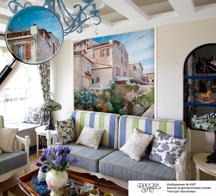 В нашем климате это не всегда возможно осуществить, но всегда можно добавить пространства и ощущение света за счет фресок или фотообоев с морскими видами Лазурного берега или городскими пейзажам Прованса!