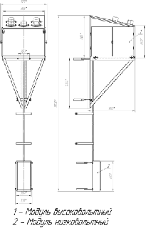 Высоковольтный шкаф представляет собой металлический корпус с проходными изоляторами ИПУ, внутри которого расположены два трансформатора напряжения типа НОЛ, два трансформатора тока типа ТОЛ, два предохранителя ПКН.