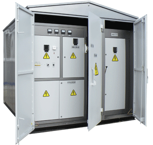 Комплектные трансформаторные подстанции КТПН наружной установки представляет собой мобильную металлоконструкцию, выполненную в высокой степени готовности к эксплуатации, что значительно облегчает монтажные работы. Доступ для облуживания обеспечивается через двери на фасаде к распределительному устройству высокого (РУВН) и низкого напряжения (РУНН), а также задние двери в трансформаторный отсек.