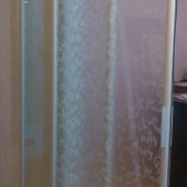 Раздвижная перегородка БЕЗ нижней направляющей с механизмом сцепки. Одна дверь тянет за собой последующие и все становятся друг за дружкой на стену.4/07/2013, 12:07